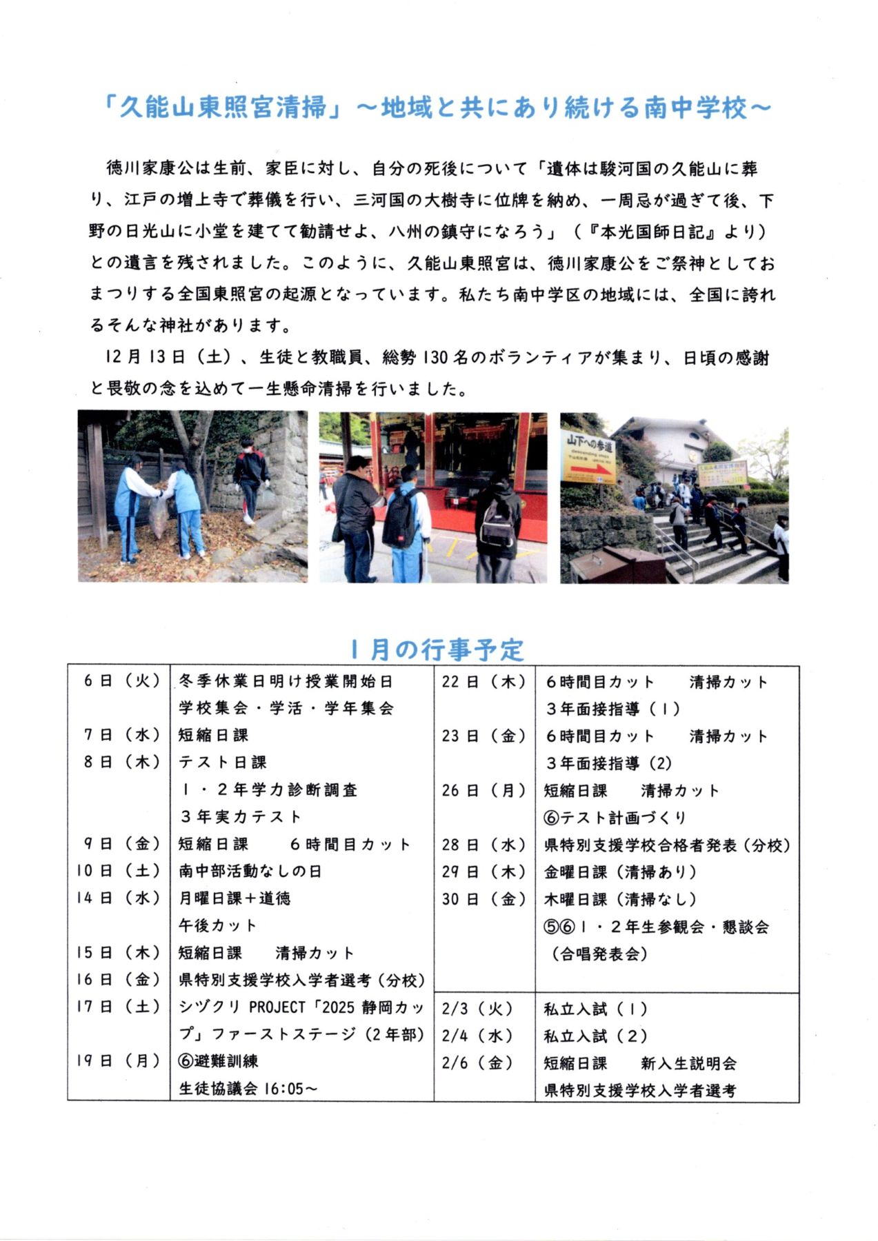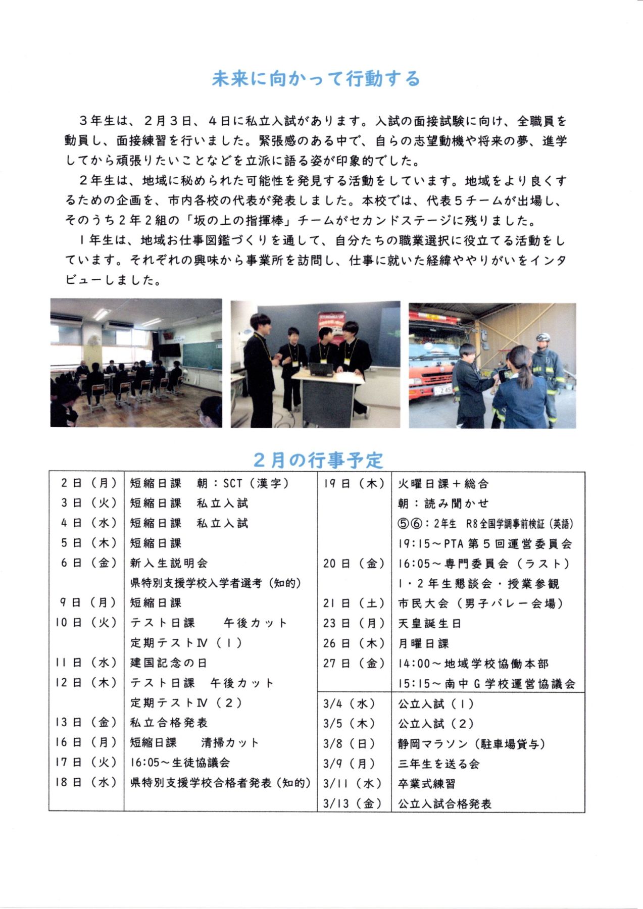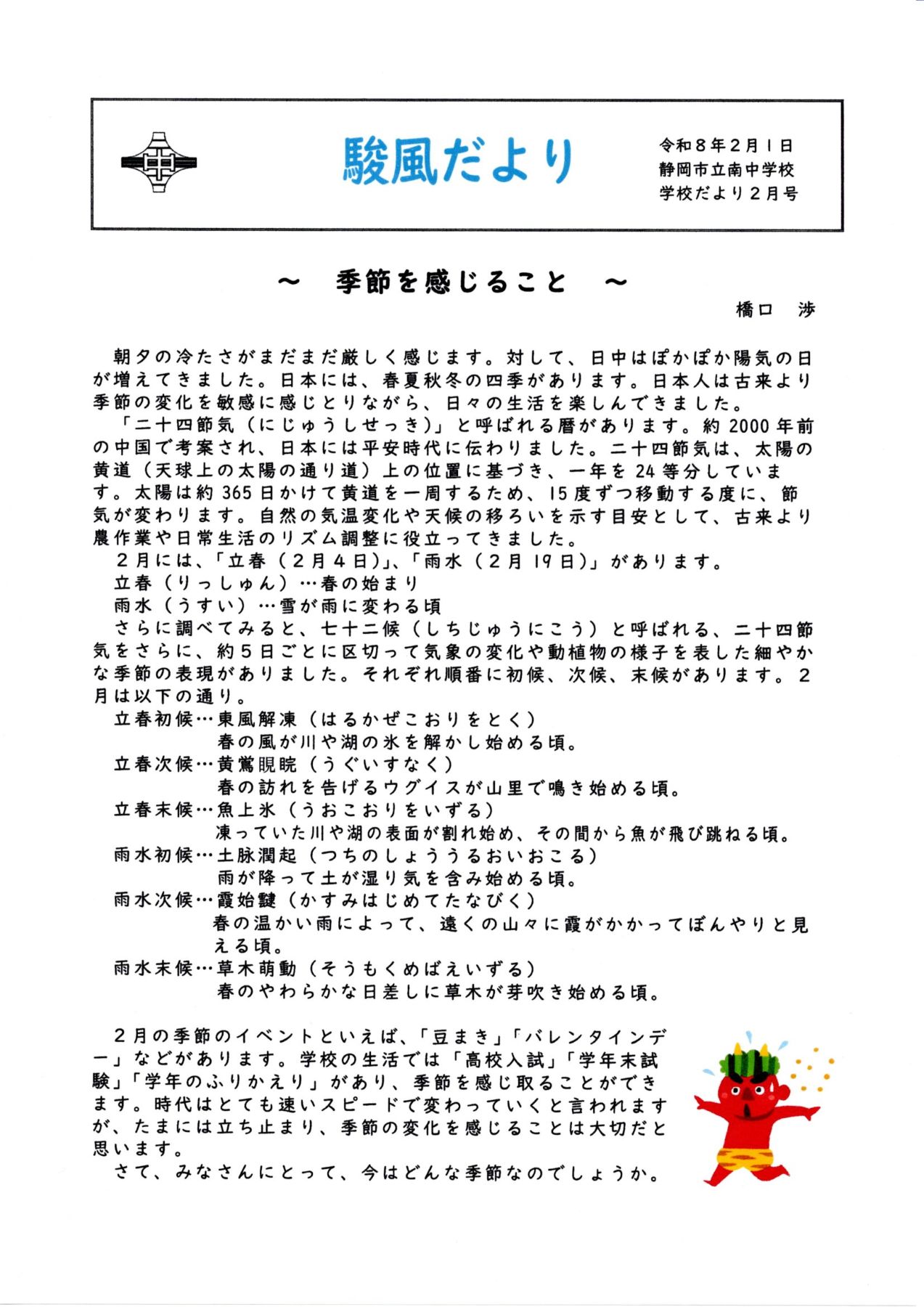 ◎「南中だより2月号」です。
