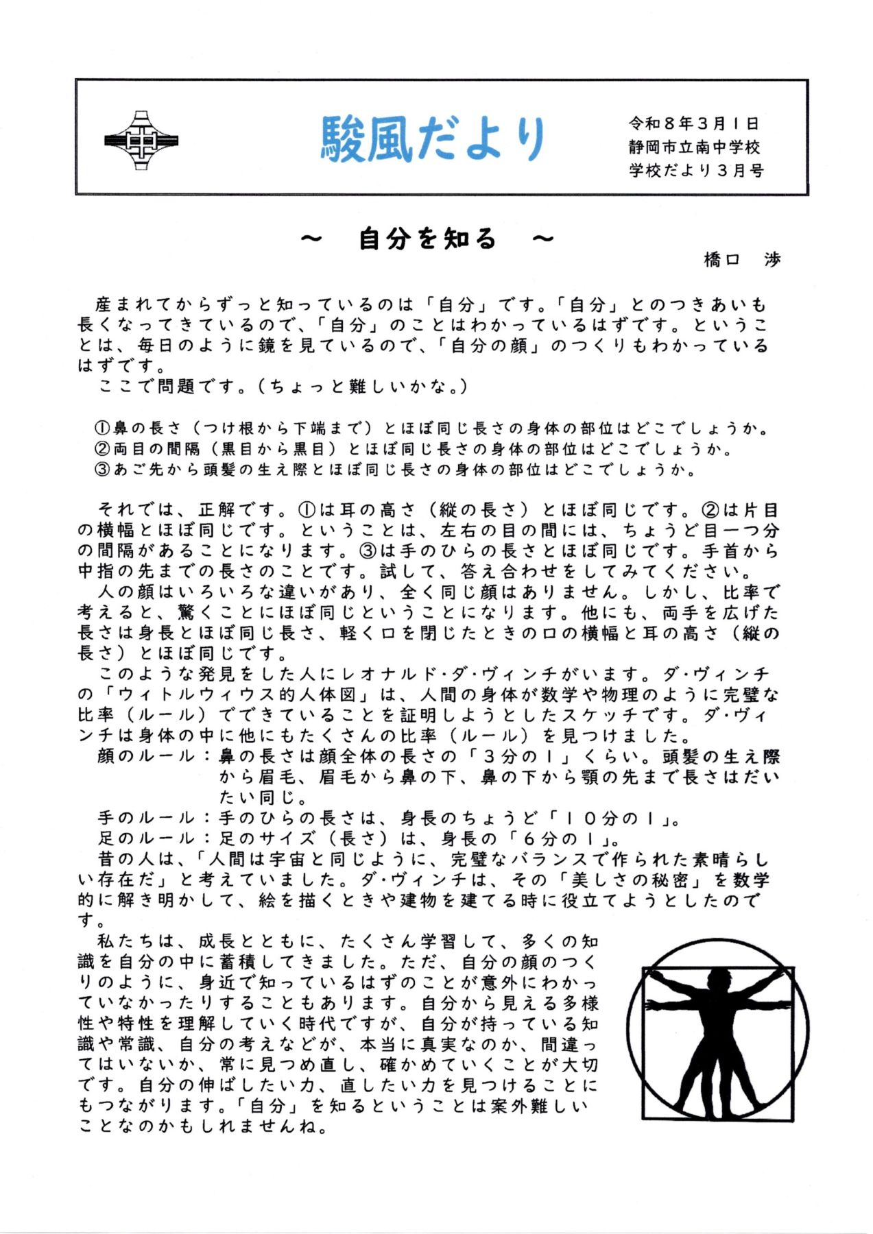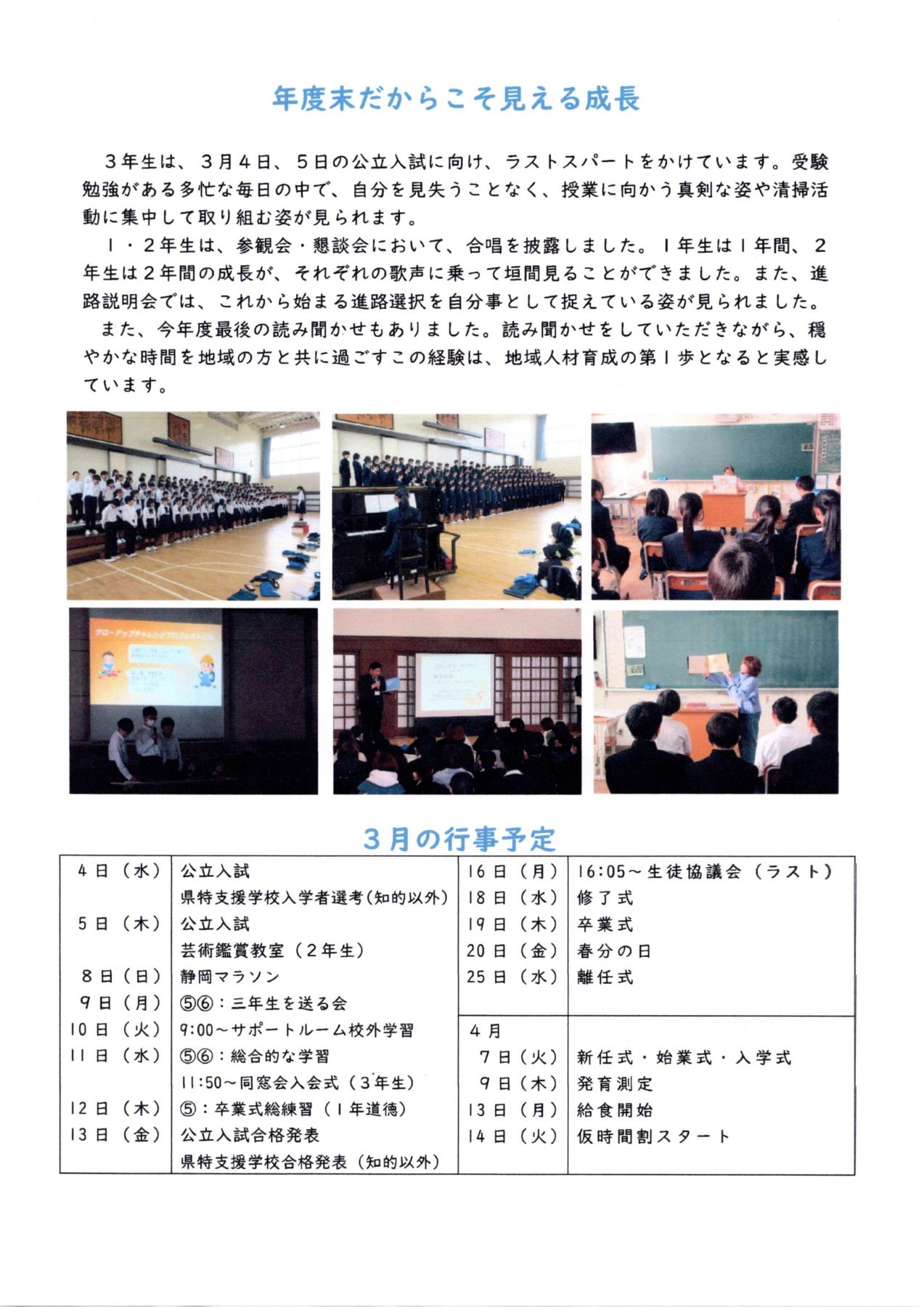 ◎「南中だより3月号」です。