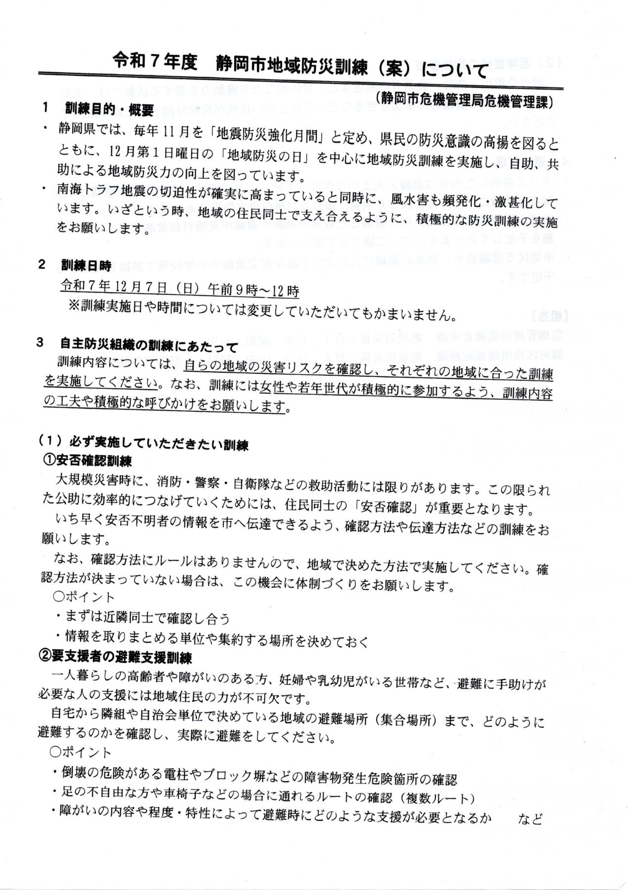 ●トピックス:静岡市防災訓練12/7について