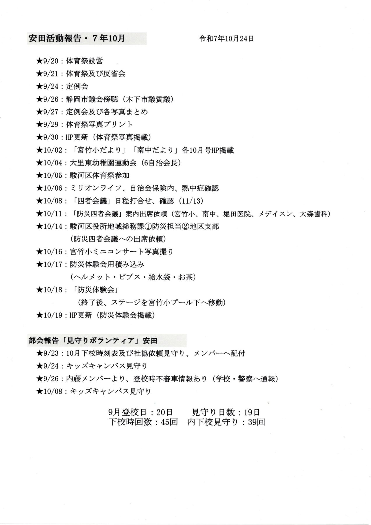 宮竹1/2丁目:(前回)子ども会会員増員、25名になった。