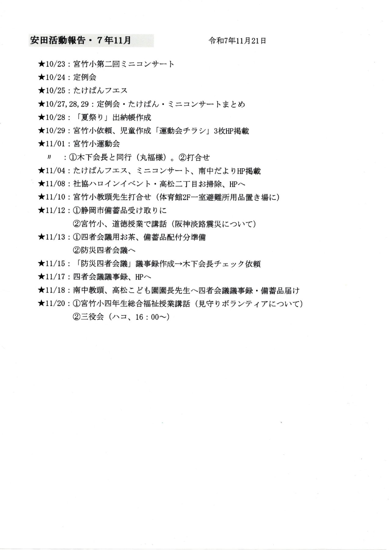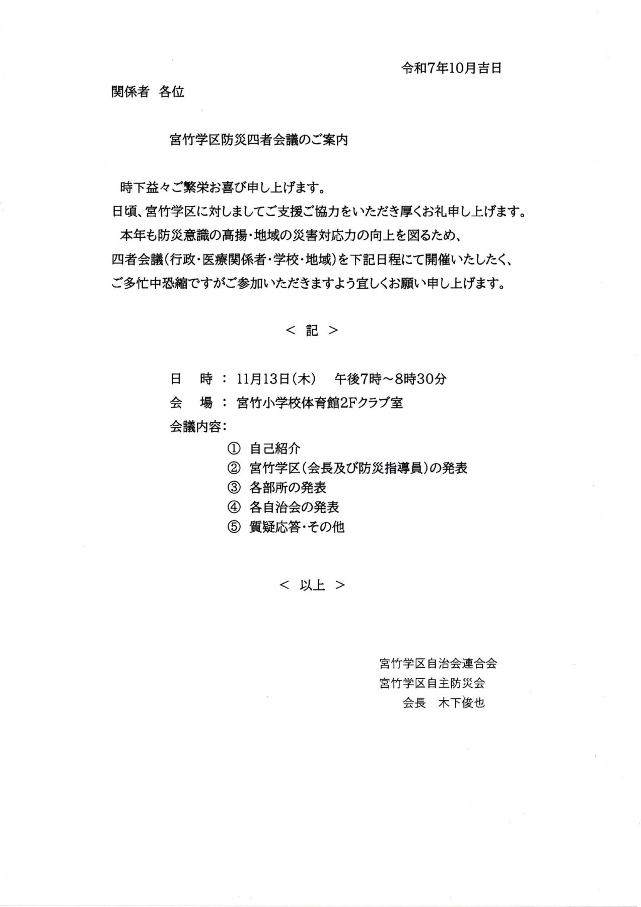 ※次回定例会 12月19日(金)19時30分~(宮竹小クラブ室)
