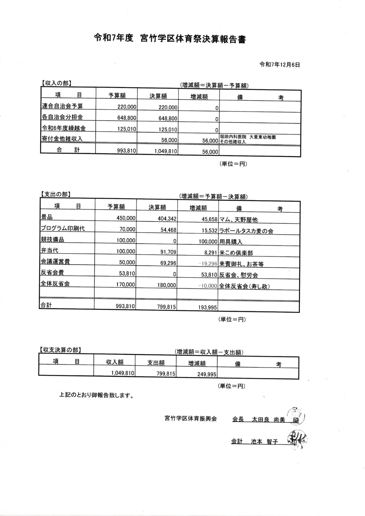 子ども会:・夏祭り費用ハッピ等採算収まる