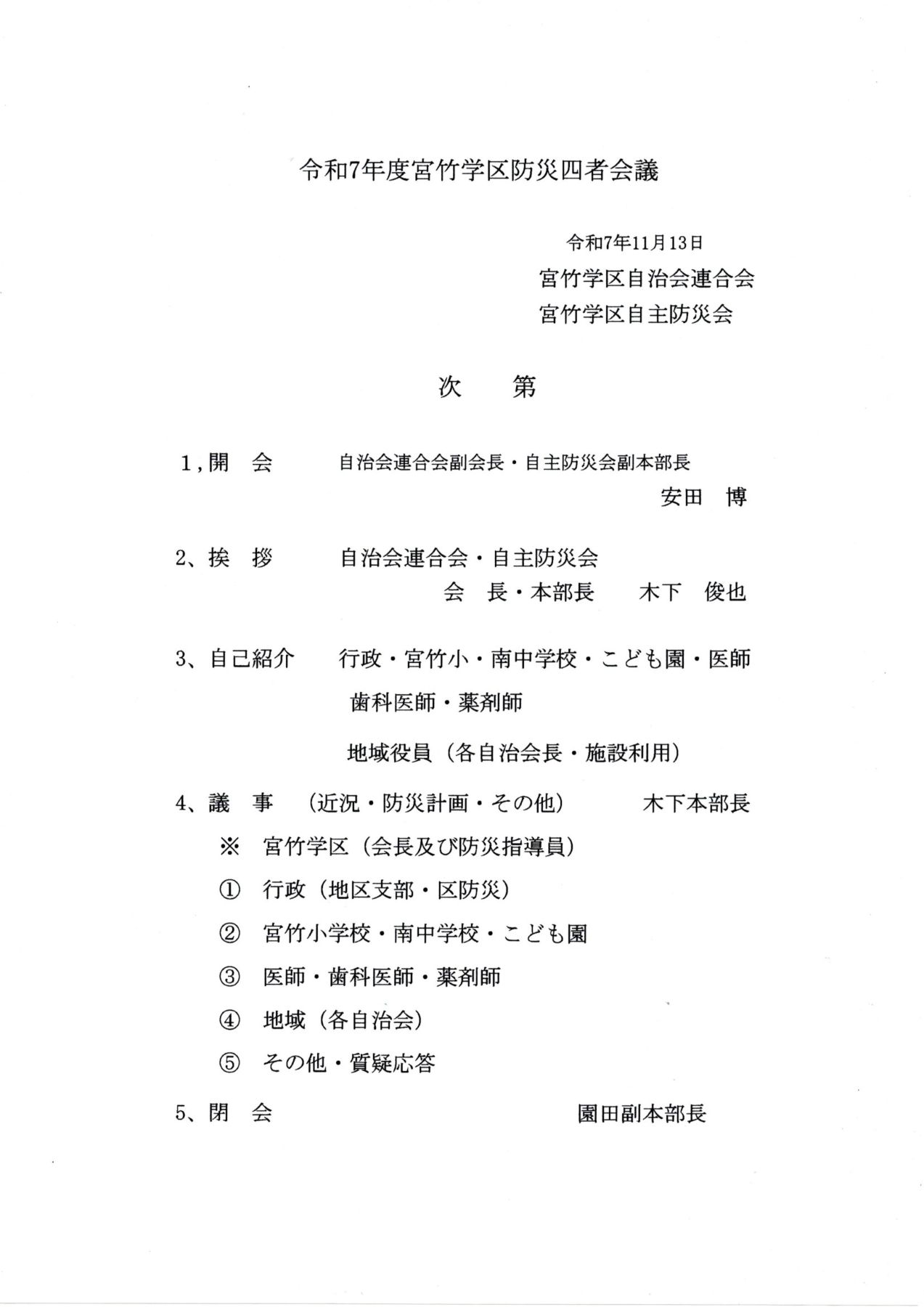 宮竹学区より、連合三役・六自治会長が列席しました。