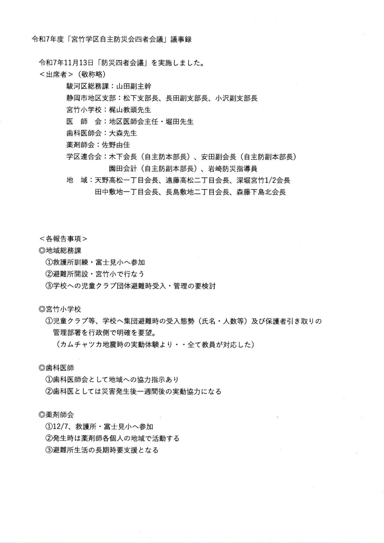 ◎11月13日「宮竹学区防災四者会議」が行なわれました。