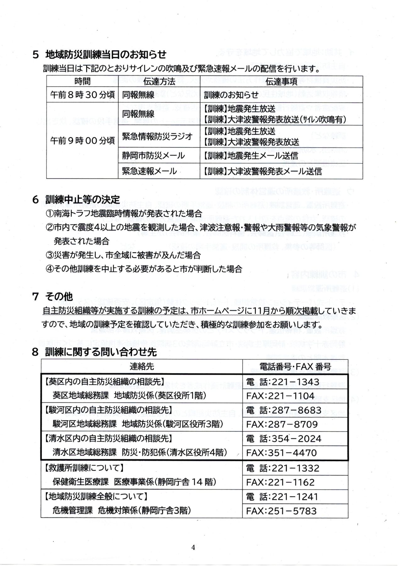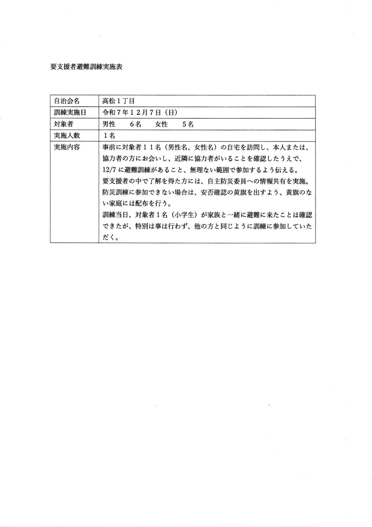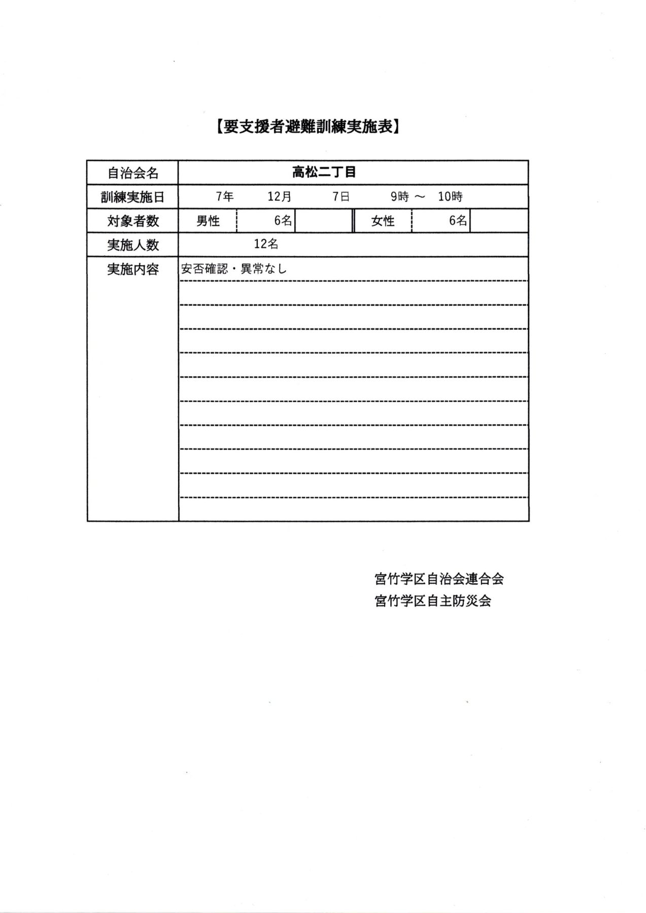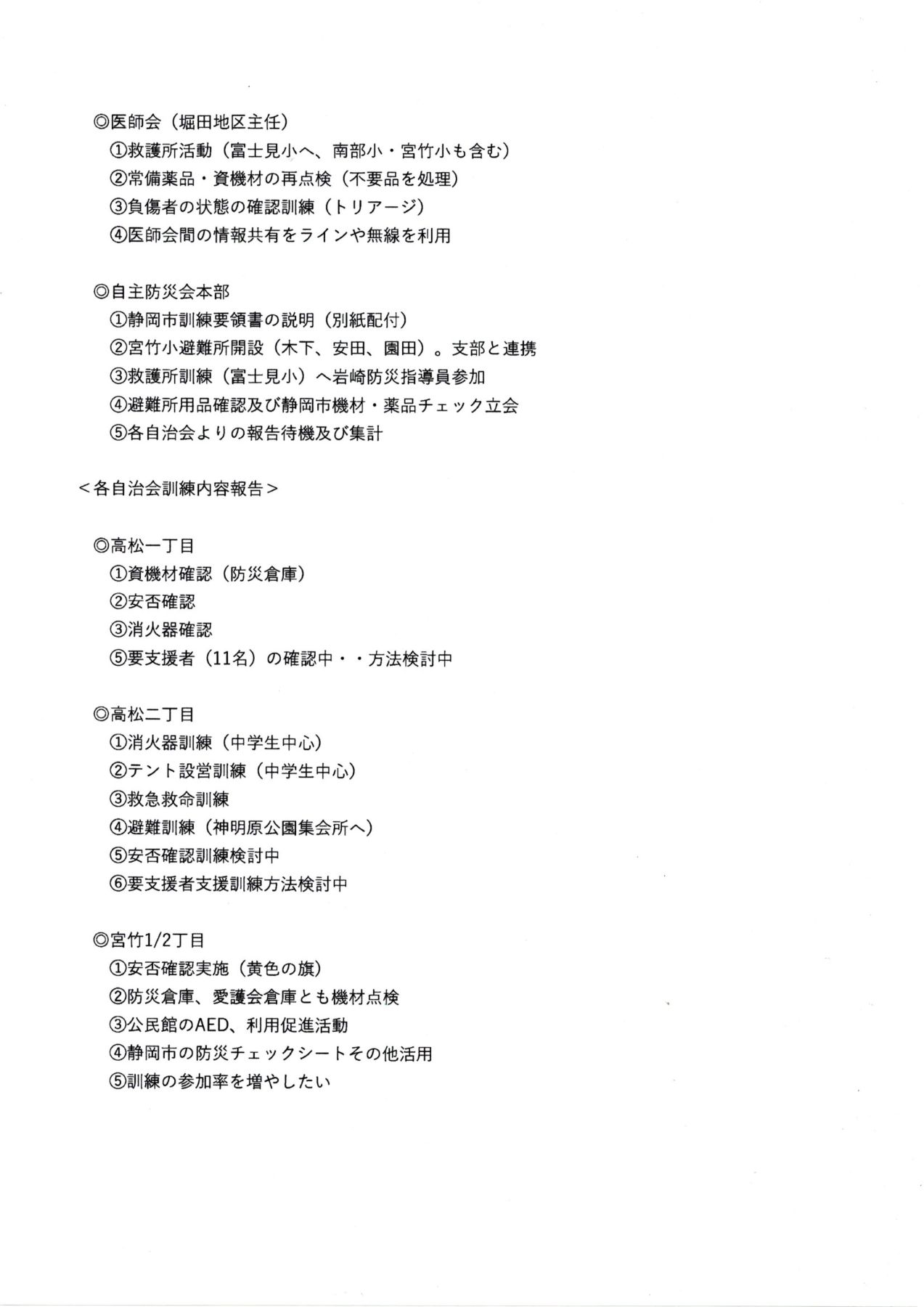 学区自主防災会及び各自治会実施内容は下記です。