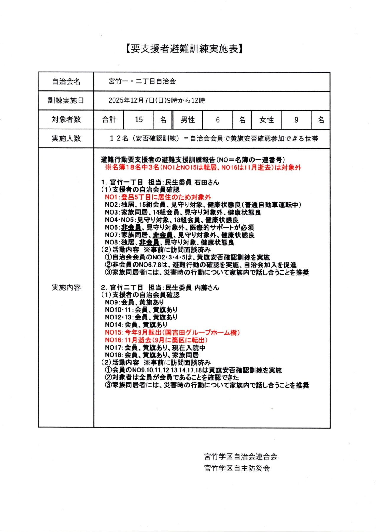 ⑤各自治会より報告の訓練参加者数集計