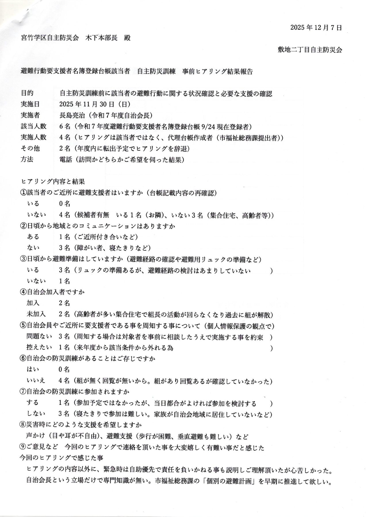各自治会:下記報告書